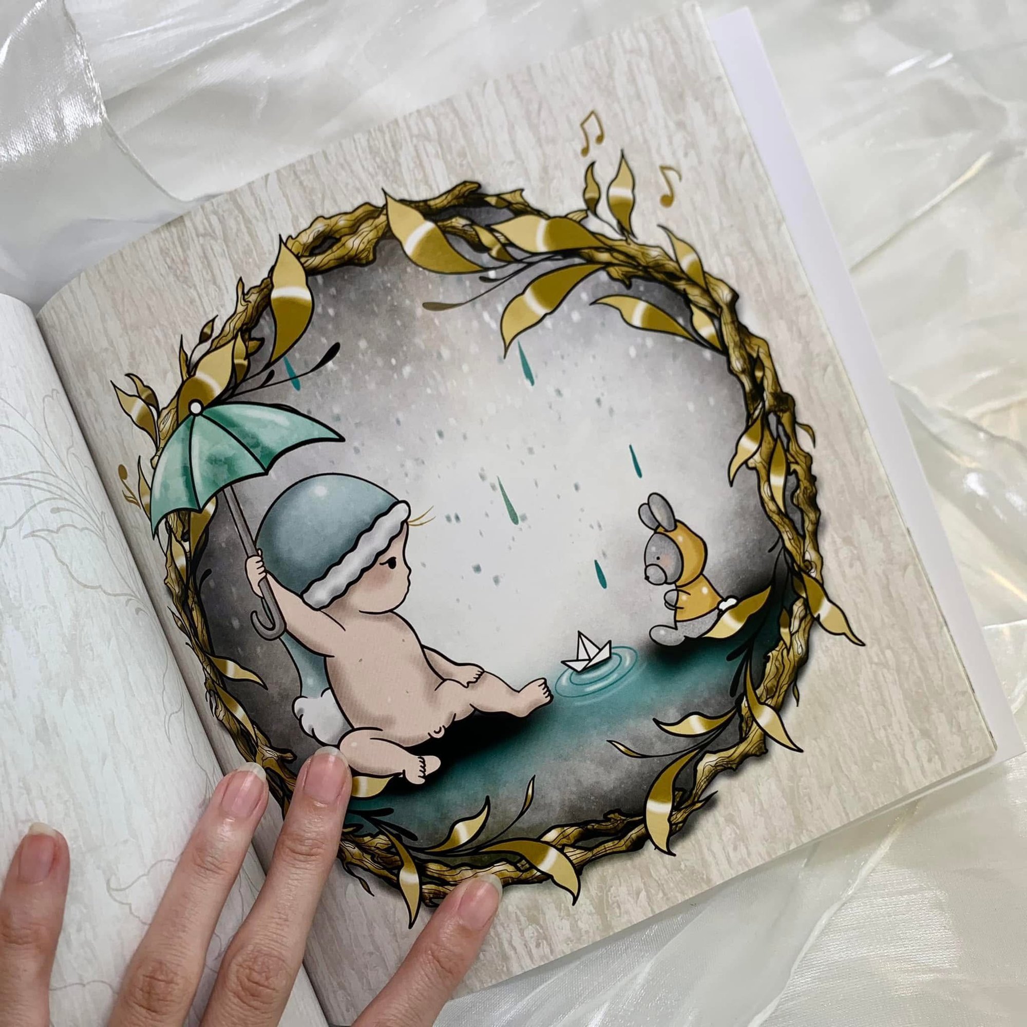 Hola bollito, es un libro de ilustraciones infantiles que narra las vivencias y pensamientos de un bebé durante su gestación en el vientre de su madre.